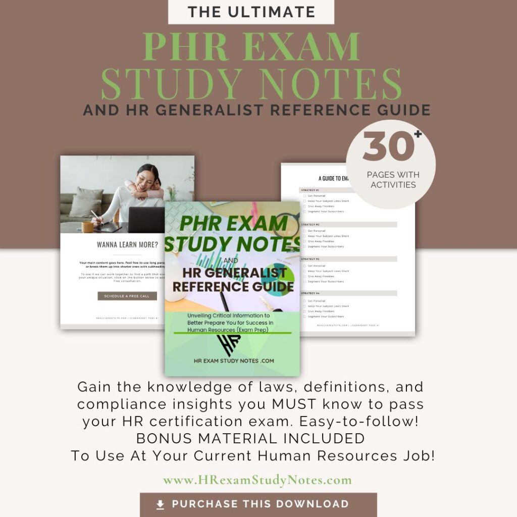 Are you tired of spinning your wheels trying to learn the information to pass the HR Certification Exam? The PHR Exam Study Notes and HR Generalist Reference Guide is your shortcut to learning faster and retaining what you learn.